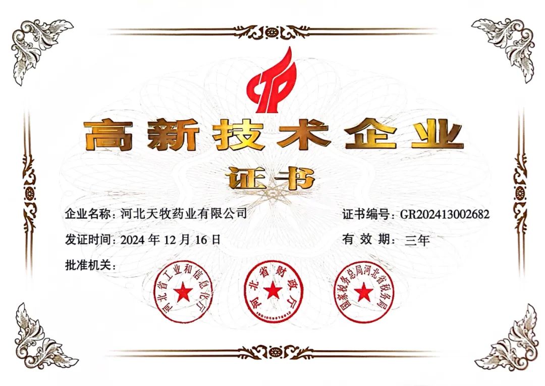 近日,根據《高新技術企業認定管理辦法》(國科發火〔2016〕32號)和《高新技術企業認定管理工作指引》(國科發火〔2016〕195號)有關規定,河北天牧藥業有限公司成功通過相關部門的評審,正式認定為“高新技術企業”。 高新技術企業認定是國家級資質認證,綜合考核指標包括科技人員、研發投入、成立時間、知識產權、科技成果、企業成長性、銷售額等。高新技術企業稱號是科技型企業的重要榮譽資質之一,也是對企業科研工作的權威肯定。 “高新技術企業”是國家為扶持和鼓勵高新技術企業發展、調
